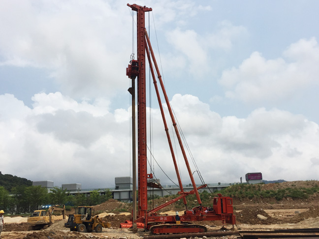 ZJL系列履帶式振動沉管灌注樁機由電動履帶式多功能樁架和振動錘兩個部分組成。樁架采用電動履帶式行走機構,自動化程度高、可進行正反180度回轉,移位迅速、轉場靈活。利用振動錘產生的激振力及沉樁部件自重對樁管施加壓力沉樁施工,與一般鉆孔灌注樁比,沉管灌注樁避免了一般鉆孔灌注樁樁尖浮土造成的樁身下沉,持力不足的問題,同時也有效改善了樁身表面浮漿現象。